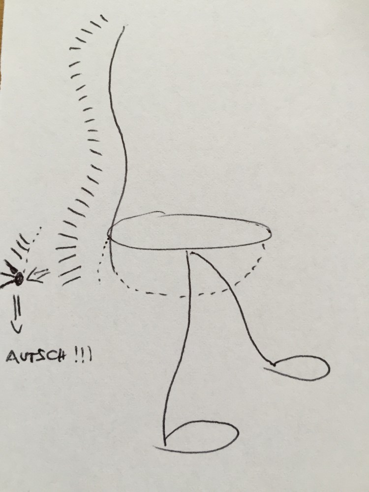 Diese rutscht dann ein wenig nach außen (siehe Pfeil 3), und verengt somit die Zwischenwirbelräume entlang der Lendenwirbelsäule. Befinden Sie sich nun noch mehrere Stunden in ein- und derselben Haltung intensiviert sich die Problematik und erste Schmerzen können entstehen.