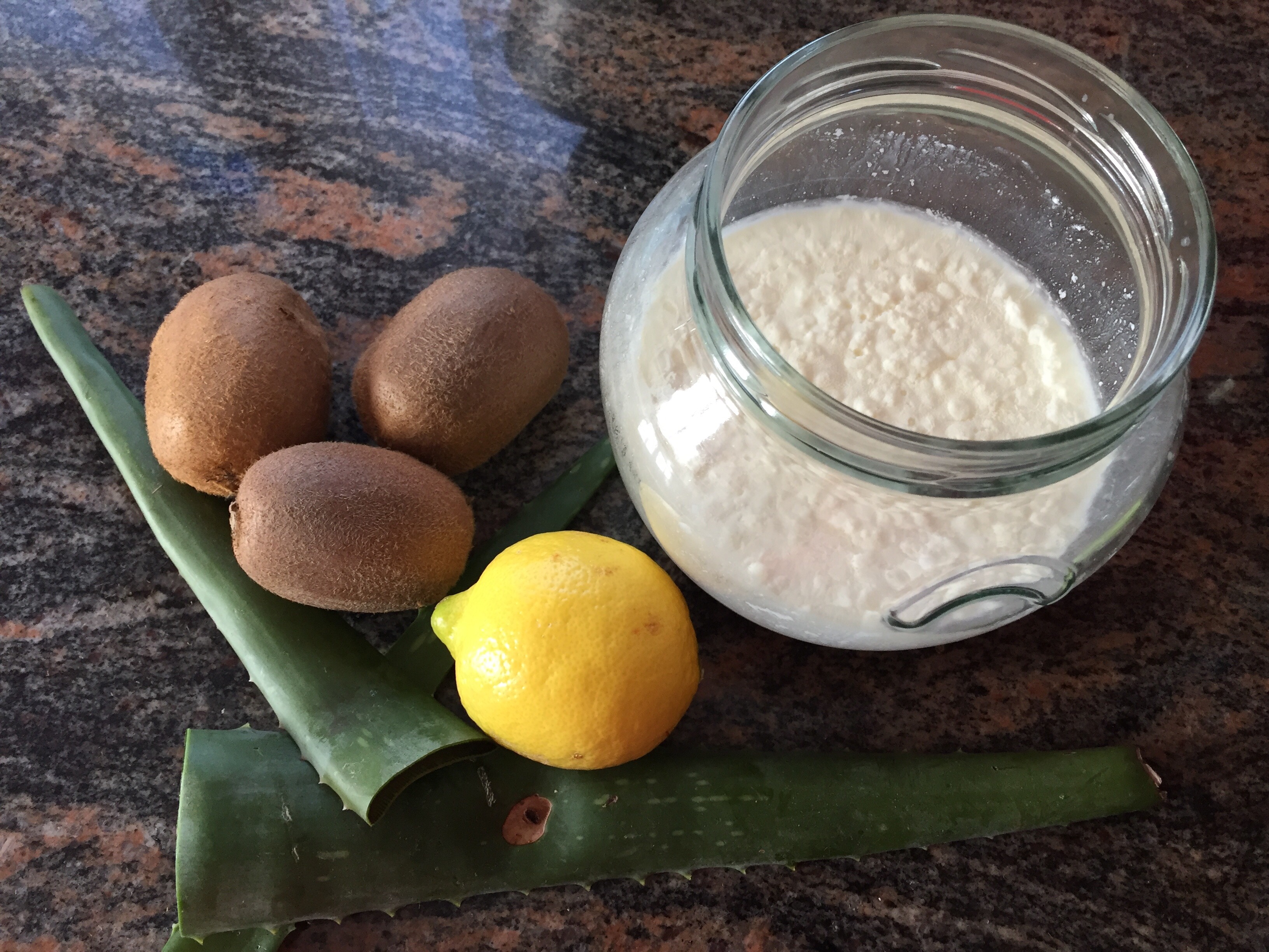 …wieder mal in Analogie zu meinem heutigen, wie ich meine, „mutigen“ 😉 Kiwi-Zitrone-AloeVera-Kefir-Smoothie…